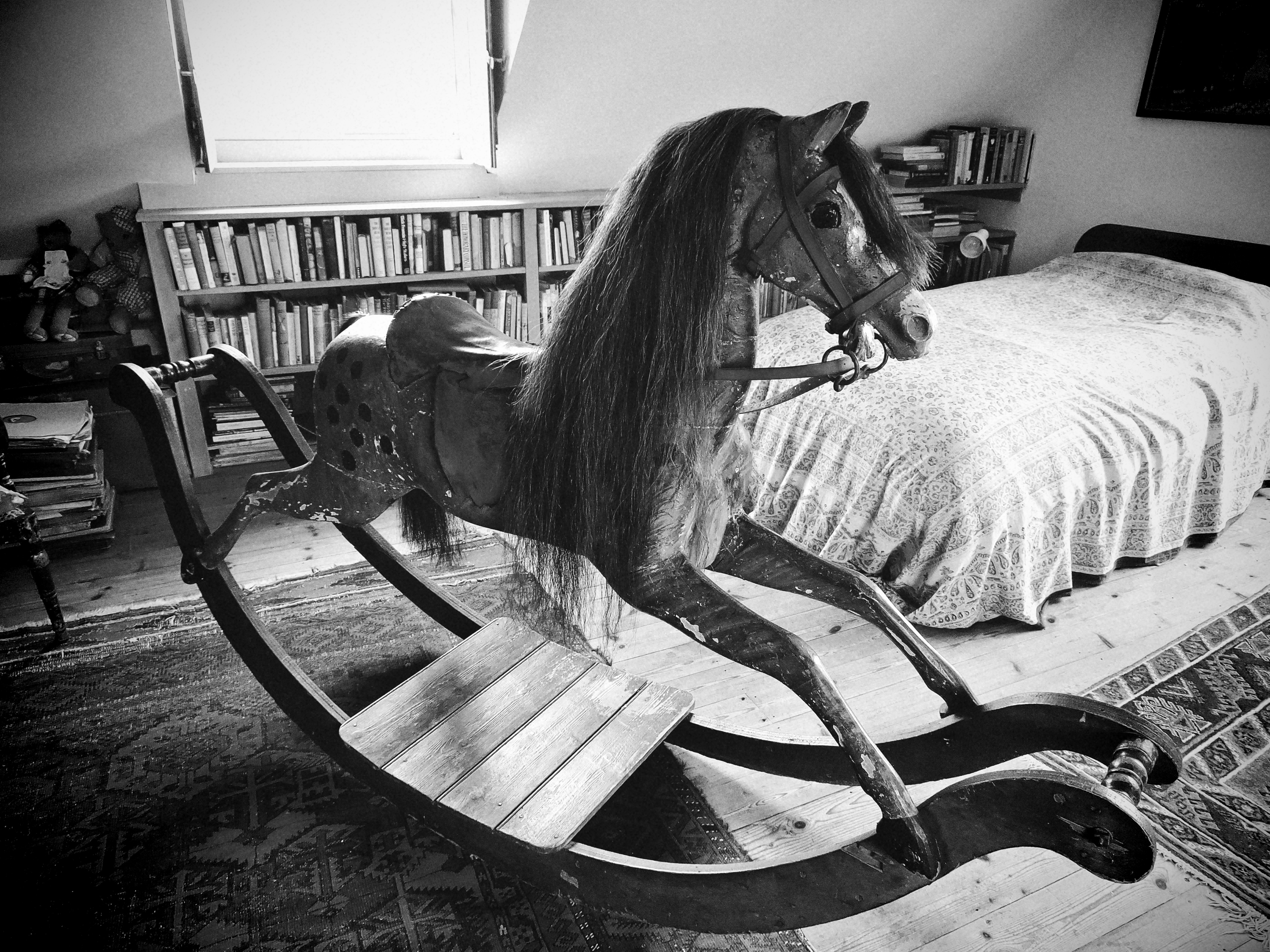 • Finally, check out Ed’s photo of the rocking horse in author Lucy Boston‘s house. Why are rocking horses this scary?